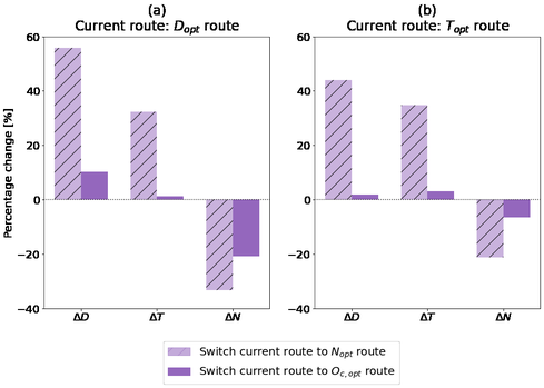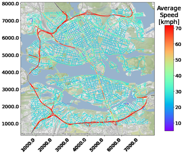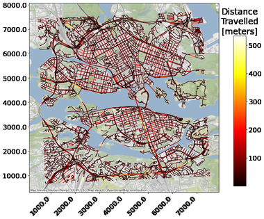 A A A Optimizing noise exposure in the Vehicle Routing Problem: A case study of last-mile freight deliveries in Stockholm Siddharth Venkataraman 1 The Centre for ECO 2 Vehicle Design, The Marcus Wallenberg Laboratory for Sound and Vibration Research (MWL), KTH Royal Institute of Technology, SE-100 44, Stockholm, Sweden Sacha Baclet The Centre for ECO 2 Vehicle Design, The Marcus Wallenberg Laboratory for Sound and Vibration Research (MWL), KTH Royal Institute of Technology, SE-100 44, Stockholm, Sweden Dr. Romain Rumpler The Centre for ECO 2 Vehicle Design, The Marcus Wallenberg Laboratory for Sound and Vibration Research (MWL), KTH Royal Institute of Technology, SE-100 44, Stockholm, Sweden ABSTRACT Improvements in noise mapping techniques and smart cities infrastructure have fostered the development of new ways to evaluate tra ffi c noise exposure. An example of one such outcome is the noise exposure sensitivity map, which quantifies the noise exposure potential of a road network as a function of the vehicle type, the prevailing background noise, and the population exposed. The potential for planning vehicle routing that is o ff ered by the above-mentioned map calls for solving the Vehicle Routing Problem (VRP) with a focus on optimising the noise exposure. A case study is chosen for applying the VRP, and it is taken from last-mile o ff -peak deliveries performed in Stockholm, Sweden in the context of the CIVITAS Eccentric project. The VRP is independently solved for the following objectives: distance travelled, driving time, and driving noise exposure potential. Also considered is a heterogeneous objective that is a combination of these factors. The impact of the objective function, on the resulting routes is presented. 1. INTRODUCTION Freight transportation, although having benefits, also generates costs that fall on people in the vicinity of its operations [1]. This led to expanding the objectives of the classical vehicle routing 1 sidven@kth.se a slaty. inter.noise 21-24 AUGUST SCOTTISH EVENT CAMPUS O ¥, ? GLASGOW problem (VRP) to include metrics that can assess the potential for environmental pollution [2, 3]. Environmental noise has been regarded for decades as a cause of public health concern [4]. Its negative impact as an environmental stressor in Europe is increasing in dominance [5] with road tra ffi c noise considered as the main contributor [6]. In the context of road tra ffi c, road freight transport has a significant presence in the road network [7] and consequently shares in being responsible for noise pollution problem. Noise emissions is therefore a reasonable candidate to be considered in the VRP. The work presented here proposes a method to include noise pollution in the center of the vehicle routing problem, namely in the definition of the objective function. A prerequisite to apply this method is a road-network derived using a particular methodology for noise evaluation: receiver- centric noise exposure sensitivity mapping [8]. To test the methodology, an existing case study of last-mile o ff -peak deliveries is utilized to frame a vehicle routing problem. This case study took place in the City of Stockholm, Sweden, in the context of the CIVITAS Eccentric project [9]. Four objective functions are defined and used for optimizing the vehicle route. The optimized routes are then evaluated on the basis of the following metrics: distance travelled, driving time, and noise exposure potential. 2. METHODOLOGY A classical single-echelon VRP is defined by locations of the depot and customers, and the costs incurred in travelling between each pair of locations. It also includes the supply at the depot, demand of the customers, and the capacity of the vehicles performing the delivery. A double-echelon VRP includes the presence of warehouses for the intermediate storage of goods between the depots and the customers. Depots and warehouses tend to be placed at the outskirts of urban areas, thereby reducing the scope of noise pollution when routing between them. Therefore, consideration of noise exposure is limited to the routing between customers and a depot or warehouse. 2.1. Input Data The primary type of input data is connected to the road network. The spatial limits of the road network is defined by the spatial spread of the nodes, i.e. , the locations of the depots / warehouses and the customers. Geographical data of a road network is obtained from OpenStreetMap (OSM) [10]. Two additional attributes of the road network need to be derived for evaluating the cost metrics presented in this approach. The first one is the average speed of a vehicle on each road segment. This requires GPS waypoint information from the vehicle types of interest, and road segment attributes, namely road category and maximum speed limit. The former is obtained from sources responsible for the vehicle service scheduling, e.g., logistics service providers. The latter two can be obtained from OSM provided the road network data is well maintained, otherwise from other GIS service providers like Google and HERE. The second additional attribute is the noise exposure potential of the road network. This is obtained from noise-exposure sensitivity maps using the approach presented in [8]. 2.2. Cost metrics A cost metric is an attribute of a road segment that serves two purposes: it may be included in an objective function that is to be minimized, thereby exerting an influence in the route planning; it may also be used to evaluate a route obtained after optimizing an objective function, even if the cost metric is not used in this objective function. Two metrics that are commonly optimized in the VRP are: i) distance travelled, and ii) driving time. In the presented approach, a new metric is introduced to enable minimizing noise pollution: iii) noise exposure potential. The three cost metrics are defined and quantified for each road segment as follows. 2.2.1. Distance Travelled The distance travelled is define