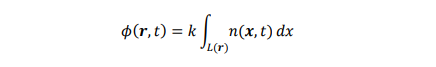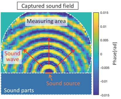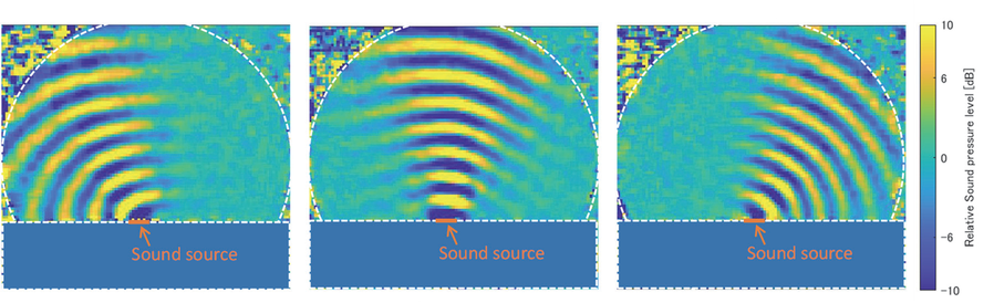 A A A Experimental Observation of the Sound Field Around a Moving Source Using Parallel Phase-Shifting Interferometry Mariko Akutsu 1 Railway Technical Research Institute 2-8-38 Hikari-cho, Kokubunji-shi, Tokyo, Japan Waseda University 3-4-1 Ohkubo, Shinjyuku-ku, Tokyo, Japan Toki Uda 2 Railway Technical Research Institute 2-8-38 Hikari-cho, Kokubunji-shi, Tokyo, Japan Kohei Yatabe 3 Tokyo University of Agriculture and Technology 2-24-16 Naka-cho, Koganei-shi, Tokyo, Japan Waseda University 3-4-1 Ohkubo, Shinjuku-ku, Tokyo, Japan Yasuhiro Oikawa 4 Waseda University 3-4-1 Ohkubo, Shinjyuku-ku, Tokyo, Japan ABSTRACT Using parallel phase-shifting interferometry, we attempted to observe the sound waves around a high-speed moving sound source. The parallel phase-shifting interferometry can visualize the sound waves in the air based on the relationship between the air density modified by the sound pressure and the light phase of the PPSI laser. In our experiment, the sound source that emits 40 kHz sinusoidal sound was launched at 50 km/h or 100 km/h using RTRI’s experimental testing facility. From the measurement, we succeeded in observing the frequency modulation caused by the Doppler effect. Furthermore, by applying three time-directional band-pass filters, frequency distributions around the high-speed moving source are clearly imaged. Therefore, the frequencies are modulated lower and higher at the backward and forward of the sound source, respectively. 1. INTRODUCTION As wayside noise along railways remains an environmental issue, the characteristics of sound sources and sound propagation should be understood to reduce railway noise or improve noise 1 akutsu.mariko.82@rtri.or.jp 2 uda.toki.92@rtri.or.jp 3 yatabe@go.tuat.ac.jp 4 yoikawa@waseda.jp (line ne at, r = | ia inter.noise SCOTTISH EV! VENT CAM pus = 2027? GLASGOW prediction models. For high-speed trains, railway noise is assumed to be a moving source whose characteristics differ from those of a static sound source. Meanwhile, current noise prediction models comprising monopole sources do not consider the characteristics of moving sources (e.g., the Doppler effect). Therefore, identifying the characteristics of high-speed moving sound sources is important to help improve noise prediction models. Microphones have been used in most cased to measure sound. Microphone arrays have already been developed to identify sound sources and used for measuring train noise [1][2]. The directions of sound sources and a resulting sound map can be easily obtained by processing the signals between microphones. However, microphone arrays cannot directly visualize the sound propagation path. For the visualization, the sound pressure distribution over the entire sound field should be obtained. Schlieren photography is a conventional method for visualizing air fluctuations and has also been applied to sound waves [3]. As, this method is applicable only to high-pressure fluctuations due to its low sensitivity, some particular treatment is required for visualizing the sound waves. The measurement system used in this study, namely, parallel phase-shifting interferometry (PPSI, DELTAPH PHI-100; Photonic Lattice, Inc.), is also a promising measurement technology that can visualize sound waves, including unsteady phenomena, such as aerodynamic sound [4][5][6]. Using PPSI, we attempted to observe airborne sound waves radiated by a moving source running at 100 km/h. Consequently, we succeeded in visualizing sound waves and the frequency modulation of sound waves due to the Doppler effect. 2. MEASUREMENT METHOD OF PPSI 2.1. Measuring principle of PPSI Considering the relationship between sound pressure and air density, a sound field can be observed by the phase of light. The phase of light affected by sound was measured using PPSI. Figure 1 depicts the diagram of PPSI. The light emitted by the laser was split into two orthogonal polarizations: reference light and object light. The object light travels back and forth through the sound field, forming interference fringes with the reference light. The phase of these interference fringes is captured using a high-speed polarization camera (CRYSTA PI-1P; Photonic Lattice, Inc.,) [7]. This polarization camera, in which four sets of polarization filters are attached in front of its image sensor (Figure 2), can obtain spatial phase distributions. Typically, the phase of light is determined from interference fringes by adopting a phase-shift method. However, in practice, providing an exact phase shift to reference light is challenging. The following method was used in this study: the light phase was obtained from the measured interference fringes using hyper ellipse fitting in a subspace method [8], and the DC component was eliminated using a time-directional filter [9]. Figure 1: Schematic of parallel phase-shifting interferometry. The parallel phase- shifting interferometry consists of an interferometer and a polarized high-speed camera. The camera can detect the phase difference between the reference light and object light. Spatial filter Lens |Quarter-wave plate High-speed polarization camera = Object light Reference ight 0 π/4 3π/4 π/2 Image sensor Linear polarizer Figure 2: Schematic of the high-speed polarization camera. Four sets of polarization filters are attached in front of its image sensor. 2.2. Converting light phase to sound pressure As mentioned in the previous section, the light phase is obtained by PPSI. This section discusses the conversion from light phase to sound pressure. At position r , changes in the air density cause alterations in the refractive index of light as 𝑛ሺ𝒓, 𝑡ሻൌ 𝐶൫𝜌 𝜌ሺ𝒓, 𝑡ሻ൯1 , (1) where 𝑛 represents the refractive index of light, 𝜌 represents the air density in the atmosphere, 𝜌 represents the air density fluctuations, and 𝐶 is a constant value. Assuming an adiabatic change, the relationship between light refraction and sound pressur