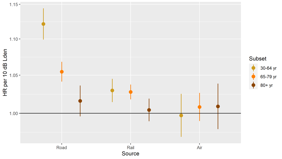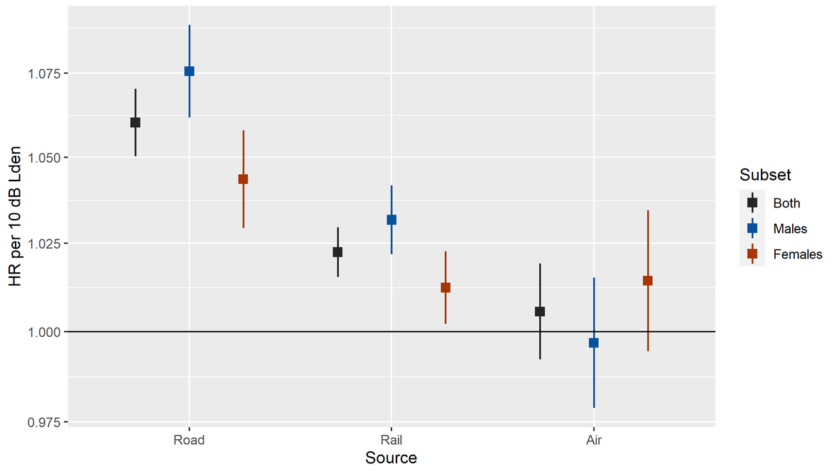 A A A Long-term exposure to transportation noise and mortality with diabetes mellitus: a national cohort study Danielle Vienneau 1 Swiss Tropical and Public Health Institute, Kreuzstrasse 2, CH-4123 Allschwil, Switzerland University of Basel, Petersplatz 1, CH-4003 Basel, Switzerland Benedikt Wicki Swiss Tropical and Public Health Institute, Kreuzstrasse 2, CH-4123 Allschwil, Switzerland University of Basel, Petersplatz 1, CH-4003 Basel, Switzerland Benjamin Flückiger Swiss Tropical and Public Health Institute, Kreuzstrasse 2, CH-4123 Allschwil, Switzerland University of Basel, Petersplatz 1, CH-4003 Basel, Switzerland Beat Schäffer Empa, Swiss Federal Laboratories for Materials Science and Technology, Laboratory for Acoustics/ Noise Control, Dübendorf, Switzerland Jean Marc Wunderli Empa, Swiss Federal Laboratories for Materials Science and Technology, Laboratory for Acoustics/ Noise Control, Dübendorf, Switzerland Martin Röösli 2 Swiss Tropical and Public Health Institute, Kreuzstrasse 2, CH-4123 Allschwil, Switzerland University of Basel, Petersplatz 1, CH-4003 Basel, Switzerland inter-noise SUMMARY Chronic exposure to transportation noise is related to cardio-metabolic diseases, including diabetes mellitus incidence. In this study, we evaluated the association between source-specific transportation noise and mortality with diabetes mellitus, finding associations with road traffic and railway noise exposure. 1. INTRODUCTION Long-term exposure to transportation noise is related to cardio-metabolic diseases. Previous studies have shown both morbidity and mortality from specific cardiovascular diseases to be associated with these exposures [1-6]. Diabetes mellitus is an important risk factor for cardiovascular disease, but is 1 danielle.vienneau@swisstph.ch 2 martin.roosli@swisstph.ch ‘inter.noise 21-24 AUGUST SCOTTISH EVENT cans also a contributing factor for non-cardiovascular morbidity, such as blindness and kidney disease, and mortality [7]. Identified as an important health outcome in the 2018 WHO environmental noise guideline systematic reviews [4, 8], the body of evidence supporting an association between noise and diabetes mellitus incidence is also growing. This study aimed to evaluate the association between road traffic, railway and aircraft noise exposure and mortality with diabetes mellitus in a nation-wide cohort in Switzerland with high quality exposure assessment and 15 years of follow-up. 2. METHODS Over 4.1 million adults in the Swiss National Cohort (SNC) were followed from 2001-2015. Accounting for residential history, source-specific noise calculations were performed for residential locations. Specifically, road traffic, railway and aircraft noise from Swiss-wide models for the years 2001 and 2011 were linked to individuals in the SNC, based on their residential geocode and floor of residence. Noise levels (Lden) at the maximum exposed façade per dwelling were used. The mean exposure in three 5-year periods (2001-2005, 2006-2010, 2011-2015) were calculated, with the residential location updated at the start of each period for movers. ICD10 codes E11-E14 were used to identify mortality with diabetes mellitus, either as the primary definitive cause, concomitant, consecutive or initial disease. Type 1 diabetes (E10) was excluded since its pathophysiology and risk factors are not primarily related to lifestyle factors, and disease onset is typically already in early life. Multipollutant, time-varying Cox regression with age as timescale was applied to determine the mortality risk (hazard ratios, HR, and 95% confidence intervals). Models included each noise source, and were adjusted for individual and area-level covariates plus air pollution (PM 2.5 or NO 2 from 100 ×100 m European models [9], tested in separate models). HR and 95% confidence intervals were expressed per 10 dB Lden. HRs stratified by sex and age were also derived. 3. RESULTS During follow-up (mean 13.4 years) over 72,000 deaths identified diabetes mellitus on death certificates. Approximately 20% identified diabetes mellitus as the primary cause of death while for 80% diabetes mellitus was a concomitant, consecutive or initial disease. HR in the adjusted model (including PM 2.5 ) were 1.06 (1.05-1.07), 1.02 (1.02-1.03) and 1.01 (0.99- 1.02) per 10 dB Lden road traffic, railway and aircraft noise, respectively. Substituting PM 2.5 with NO 2 did not change the associations. Associations with road traffic and railway noise were higher in males compared to females (Figure 1), and higher in younger compared to older adults (Figure 2). This pattern tended to be reversed for aircraft noise. Figure 1: Sex-specific hazard ratios for mortality with diabetes mellitus, per 10 dB Lden for each noise source 1.075- & 1.050- 3 Subset a io] Both oO ~~ ‘ Males @ 1.025- a ‘ Females ow = 1.000 0.975 - : ' ' Road Rail Air Source Figure 2: Age-specific hazard ratios for mortality with diabetes mellitus (both sexes combined), per 10 dB Lden for each noise source 4. CONCLUSIONS Using death certificates alone for outcome definition is likely to result missing diabetes mellitus diagnosis for some individuals. However, such misclassification is unlikely to be differential on noise exposure, and would lead to underestimation of the risk rather than produce spurious results. Thus, HR per 10 dB Lden 1.155 1.10- 1.05- 1.00 Road Rail Source Air Subset © 30-64 yr © 65-79 yr @ 80+ yr this study provides new evidence that mortality in persons with diabetes mellitus is associated with exposure to road traffic and railway noise. Interestingly the pattern of risk is similar to that for cardiovascular disease mortality, with the strongest effects seen for road traffic followed by railway noise [10]. This is also the first study on diabetes mellitus clearly demonstrating a link with railway noise exposure. 5. ACKNOWLEDGEMENTS We thank the Federal Statistical Office (FSO) for providing mortality and census data and for the suppor