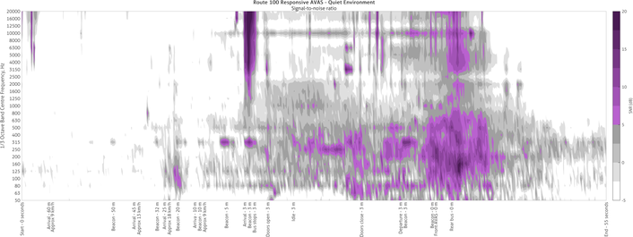 A A A Performance and Acceptability of the TfL Urban Bus Sound (AVAS) Eduardo Manzano Fontecha 1 Anderson Acoustics Grant Lewis Waters 2 Anderson Acoustics Thomasin Stuart 3 AECOM ABSTRACT Transport for London's quiet-running bus fleet is required to include an Acoustic Vehicle Alerting System (AVAS) compliant with UNECE Regulation 138 and as part of a wider series of safety measures as set out in their Bus Safety Standard towards the London Mayor's 'Vision Zero' objectives. As a public body, TfL must ensure that the Urban Bus Sound AVAS implementation is fit-for-purpose from a safety standpoint, is considerate of driver working conditions and is consistently implemented across a number of vehicle types, manufacturers and fleet operators. Additionally, as quiet-running vehicles increase across the London bus network, it must consider the impact on the urban soundscape. Over the course of two years, Phase 2 of the project addressed practical implementation and quality assurance challenges, bringing together soundscape and acoustic testing, on-street public and key stakeholder surveys, workshops with multiple vehicle manufacturers and operators as well as engagement with bus drivers. The project concludes by providing an optimised AVAS solution with specification and vehicle checks documentation to ensure successful roll-out. The project provides an important view on considerations for how AVAS can be implemented on public transport vehicle fleets, including the need to consider and work with a wide range of public and stakeholder requirements. 1. INTRODUCTION Anderson Acoustics, AECOM and Zelig Sound were commissioned by Transport for London (TfL) to undertake works as part of the Acoustic Vehicle Alerting System (AVAS) Phase 2 project. The project works were separated into Lots A, B and C with AECOM commissioned to undertake Lot A (Engagement), Anderson Acoustics commissioned to undertake Lot B (Sound) and Zelig Sound commissioned to undertake Lot C (Sound Design). 1 eduardo@andersonacoustics.co.uk 2 grant@andersonacoustics.co.uk 3 thomasin.stuart@aecom.com sla ‘inter.n 21-24 AUGUST SCOTTISH EVENT CAMPUS ? O? ? GLASGOW 2. BACKGROUND To align with the London Mayor’s Vision Zero objectives, TfL created the Bus Safety Standard to establish a plan for implementing a range of safety measures to the bus fleet, which included a target of ‘Acoustic Conspicuity’ [1, 2]. Acoustic Conspicuity in relation to bus vehicles is the ability for road users to be aware of the presence and operation of a vehicle to sufficiently avoid risk of collision. TRL were commissioned to investigate the practical measures to achieve acoustic conspicuity for quiet-running bus vehicles, such as Electric Vehicles (EVs), Hybrid Electric Vehicles (HEVs) or Hydrogen vehicles, and their 2018 report concluded that the implementation of an AVAS was required for quiet-running vehicles [3]. Phase 1 of the project was commissioned by TfL to create a suitable Urban Bus Sound, aimed at providing a universal AVAS sound for implementation across the Greater London region, as well as to be implemented as a universal bus sound for quiet-running vehicles worldwide. The priority of this phase was to create a sound that met the UN ECE Regulation 138 performance requirements and ensured that the needs of Vulnerable Road Users (VRUs) and the bus drivers were met through extensive stakeholder engagement and involvement with the design and testing process [4]. The conclusions of Phase 1 were the selection of a final Urban Bus Sound, a successful compliance test with Regulation 138, and a trial vehicle implementation on the Route 100 fleet. A particular innovation of the Urban Bus Sound was that it comprises two sound elements, layered together, the Core sound and the Beacon sound. The Core is a broadband sound that is played continuously when the vehicle is turned on (whether it is stationary or moving) and the Beacon is a soft impulsive element or ‘ping’ that plays when the vehicle is in motion. The Beacon element was developed as a direct response to vision impairment group engagement and collaboration. 3. PHASE 2 OBJECTIVES The overarching purpose of the Phase 2 works was to finalise an operational performance standard of the AVAS and implement measures that will ensure its consistency and acceptability as it is rolled-out across the TfL bus fleet. The steps taken to achieve this were the implementation of a Responsive AVAS that adapts the sound output level to respond to the ambient sound level of the vehicle’s location, the confirmation of acoustic conspicuity performance in various environments, the assessment of acceptability of AVAS sound ingress into the driver’s cabin and the revision of the AVAS performance specification and vehicle checks documentation to support manufacturers and operators to maintain optimal AVAS performance across the TfL bus fleet. 4. WORK PACKAGE 1: RESPONSIVE AVAS INTEGRATION The concept of a Responsive AVAS was first discussed in the TRL report as a method to both support the optimisation of the sound output level of the AVAS to ensure acoustic conspicuity whilst reducing noise pollution impacts [3]. Due to concerns with variability and robustness of microphone-based approaches, it was proposed to implement a Responsive AVAS using city-wide noise modelling data combined with other geospatial datasets on street type and classification as part of the GPS used for the Intelligent Speed Assistance (ISA) provided by Actia. ISA is geospatial mapping system that automatically limits the speed of a vehicle based on a road’s speed limit. Anderson Acoustics worked in partnership with sub-contractor Tranquil City, an environmental data company, to deliver suitable geospatial datasets for the implementation of the Responsive AVAS via the Actia ISA system. sla ‘inter.n 21-24 AUGUST SCOTTISH EVENT CAMPUS ? O? ? GLASGOW The UK Department for Environment, Food and Rural Affairs (Defra) Strategic Noise M