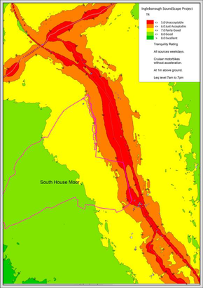 A A A Acoustic measures of biodiversity and human disturbance – a study in the UK Yorkshire Dales National Park Greg Watts, University of Bradford 1 ; Rob Pheasant 2 and David Winterbottom 3 ABSTRACT The Ingleborough Soundscape Project's primary aim was to propose a simple, low-cost acoustical metric; by which non-experts can measure the success of contrasting rewilding interventions. It also sought to quantify how exposure to transportation noise within the Ingleborough National Nature Reserve in the UK impacts human well-being. The two sites selected for the study, Colt Park Wood, and South House Moor, are located at the northern end of the Ribble Valley and are each affected by road, rail, and aircraft noise, to varying degrees. The metric developed for gauging the success of various rewilding strategies was a revised version of Acoustically Enhanced Ecological Richness, as proposed by Agius in 2020. This combines a value of ground-truthed Ecological Richness with a systematically derived value of Acoustic Richness; to give a wildness rating of 0-10+. The impact of transportation noise on humans was measured by predicting noise exposure levels and converting them to tranquillity values using the Tranquillity Rating Prediction Tool. It has been found that these tranquillity ratings relate well to levels of perceived relaxation and anxiety. Tranquillity contours were then plotted across the study site using SoundPLAN software. 1. INTRODUCTION Informed by Krause et al. (2011), the research aims of this project became an exploration of the ecological and acoustic richness of two contrasting study sites within the Ingleborough National Na- ture Reserve (INNR). These were Colt Park Wood (CPW), a non-managed ancient woodland one kilometre south of the Ribblehead Viaduct, and South House Moor, which is 2 kilometres northeast of Ingleborough. In the latter case, livestock grazing was removed in 1999, and a programme of tree planting has since taken place. Figure 1 delineates the two study areas and Figure 3b shows the cor- responding 1:50,000 Ordnance Survey map. Ecological Richness ( ER ) was simply a count of mam- malian and avian species, measured by visual observations, i.e., direct sightings and camera trap re- cordings. Acoustic Richness ( AR ) also focussed on avian and mammalian species and was contrasted with the ground-truthing visual evidence. Figure 1: Study areas 1 g.r.watts@bradford.ac.uk , 2 r.j.pheasant@outlook.com , 3 david@drwtech.uk By sampling the bio-acoustic data over different seasons, it was possible to identify levels of AR that correlated with ER ; and differentiate between the two contrasting study sites. Further issues explored during this project were the impacts of anthropogenic noise on CPW and SHM. Road, rail, and aircraft noise is perceptible throughout the north-western section of the York- shire Dales National Park, and predictions of these noise levels were made using SoundPLAN soft- ware. The effect of noise disturbance on the well-being and relaxation of visitors and residents within the INNR was modelled using a combination of the Tranquillity Rating Prediction Tool (TRAPT) proposed by Pheasant et al. (2010) and SoundPLAN to present a series of tranquillity contours. 2. METHODOLOGY 2.1. Bird Surveys From October 2019 to May 2021, two ornithological specialists carried out systematic fortnightly bird surveys of CPW. At the same time, SM4 Birdsong Meters were placed within CPW and on SHM to record diurnal and nocturnal avian and mammalian activity. It was impossible to walk the whole perimeter of CPW as there was very little access on the eastern side. However, despite the wood being narrow, its entire length can easily be visually accessed; by walking from the start of the wood at its northern tip before picking up its western boundary wall. At the southernmost end, the ornithologists took a reverse route that offset them 200m from the boundary wall, allowing a different perspective to be gained whilst at the same time including the trees in the adjacent westerly meadow. On average, each survey took 3.25 hours to complete. Unfortunately, the COVID19 pandemic interrupted the surveys for eight weeks during the Spring migratory window for birds; so, the decision was taken to compensate for the missing data by con- ducting a series of weekly surveys for the same period in 2021, which took the total to 47 completed surveys. The surveyors carried out no fortnightly bird surveys on SHM during this period. However, bird transect data provided by surveyors from the British Trust for Ornithology (BTO) for 2009, and 2014 to 2018, was used as a proxy when testing out the revised AEER metric. The BTO transect across SHM; passed within 100m of where the SM4 Birdsong Meter was located from 2019 to 2021. 2.2. Audio Recordings During October, November and December 2019, audio recordings were made from both study sites. This initial phase aimed to familiarise the researchers with the operation of the equipment and identify a single point in each study site to record from. Each song meter used a sample rate of 24,000 samples per second, as this covered a frequency range of 10Hz – 12kHz, which incorporates all UK birdsong. It also produced 16-bit WAV files from both microphones. Each device was positioned with the left- hand microphone (Channel 0) pointing in a northerly direction and the right-hand microphone (Chan- nel 1), aimed at a southerly one, providing crude directional information. The SM4 Birdsong Meters were secured to a tree by a bungee strap. These were very effective; despite regularly being nibbled by rodents. The advantage of this equipment is that it provides the capacity to monitor bird sounds around the clock. Much bird activity occurs during the night, particularly concerning movement and migration, and audio recording offers a tool for capturing this critical information. However, it doesn't always provide reliable information about what use a bird is