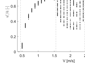 A A A Parameter identification of two coupled oscillator model for pure intrinsic thermoacoustic instability Roeland Wildemans 1 Viktor Kornilov Department of Mechanical Engineering, Eindhoven University of Technology Eindhoven, The Netherlands Ines Lopez Arteaga Department of Mechanical Engineering, Eindhoven University of Technology Eindhoven, The Netherlands KTH Royal Institute of Technology, Department of Engineering Mechanics, Marcus Wallenberg Laboratory Stockholm, Sweden ABSTRACT In this paper, a nonlinear phenomenological model of two coupled oscillators is presented, which is able to describe the rich nonlinear behaviour stemming from an unstable pure Intrinsic Thermo- Acoustic (ITA) mode of a simple combustion system. In a bifurcation analysis of a pure ITA mode, it was observed that for increasing mean upstream velocity the flames loose stability through a supercritical Hopf bifurcation and subsequently exhibit limit cycle, quasi-periodic and period-2 limit cycle oscillations. The quasi-periodic oscillations were characterized by low frequent amplitude and frequency modulation. It is shown that a phenomenological model consisting of two coupled oscillators is able to reproduce qualitatively all the di ff erent experimentally observed regimes. This model consists of a nonlinear Van der Pol oscillator and a linear mass-spring-damper oscillator, which are nonlinearly coupled to each other. Furthermore, a parameter identification of the model parameters is executed, which shows a good quantitative match between the model and the experimental data. Hence, the presented phenomenological dynamical model accurately describes the nonlinear self-excited acoustic behaviour of premixed flames. 1. INTRODUCTION Thermo-acoustic instabilities pose a severe challenge in the development of clean burning techniques using lean fully premixed laminar flames. These instabilities can typically be divided in two types, namely (i) modes with a duct acoustic origin and (ii) modes with a burner / flame Intrinsic Thermo- Acoustic (ITA) origin [1]. The latter type of mode is caused by an internal feedback loop independent of the up- and downstream acoustics as shown by Bomberg et al. [2] and Emmert et al. [3]. The 1 r.wildemans@tue.nl a slaty. inter.noise 21-24 AUGUST SCOTTISH EVENT CAMPUS O ¥, ? GLASGOW existence of an unstable pure ITA mode, which is not a ff ected by the acoustics of the setup, was demonstrated experimentally by Wildemans et al. [4]. This setup provides close to anechoic boundary conditions that enables the decoupling of the ITA mode from the acoustics. It was shown that the self-excited ITA mode reveals a rich variety of nonlinear oscillations. An experimental bifurcation analysis of the pure ITA mode was conducted by Wildemans et al. [5]. For increasing values of the bifurcation parameter, chosen as the mean velocity in the burner deck holes, subsequently a stable fixed point, limit cycle oscillations, quasi-periodic oscillations and period-2 limit cycle oscillations were observed. Besides the bifurcation analysis, a phenomenological model was proposed that was able to reproduce all observed attractors. Accurate models of the flame dynamics are an important tool in understanding and mitigating thermo-acoustic instabilities. Since the flames exhibit nonlinear behaviour, nonlinear models are required to accurately describe the flame dynamics. In most of these models, the heat-release rate is described by a static, nonlinear function of the (delayed) velocity perturbations, e.g, [6–9]. These models are capable of predicting the frequency and amplitude of self-excited thermo-acoustic oscillations originated from the acoustic modes of the system. Most of these models require the acoustics to produce self-excited oscillations. However, in case of an anechoic acoustic embedding of the burner / flame, the feedback through the acoustic modes is not present. Therefore, most of these models are not able to describe the nonlinear behaviour of the ITA modes. For pure ITA modes to be present, flame-flow feedback should be incorporated in the model to establish the ITA feedback loop. In network models, this feedback loop is incorporated due to its structure, see Bomberg et al. [2] and Emmert et al. [3]. Nonlinear flame models that are identified by externally forcing the flames, e.g., [9, 10], could easily be incorporated into network models. However, since these models are identified based on the acoustic forced dynamics of the flames, it remains unclear if they are capable of producing the rich variety of nonlinear behaviour originated from the self-excited ITA mode. The main goal of this paper is to investigate if the phenomenological model, as introduced in Wildemans et al. [5], is able to quantitatively describe the nonlinear dynamics of a pure ITA. Thereto, the nonlinear dynamical model of two coupled oscillators is investigated in detail to understand the exhibited oscillations. Furthermore, a parameter identification is conducted to show that, besides the qualitative match, there is a quantitative match between the experimental time-series and the model output. The structure of the paper is as follows. In the first section, the experimental setup is introduced. Next, the main results of the experimental bifurcation analysis are presented. In Section 4, the model of coupled oscillators is introduced. Thereafter, the parameter identification procedure is discussed. In Section 6, the results of the parameter identification are shown and discussed. Finally, conclusions are drawn in the last section. 2. EXPERIMENTAL SETUP Pure ITA modes are observed when the burner / flame configuration is decoupled from the up- and downstream acoustics of the setup. This is typically realized by using anechoic up- and downstream mu ffl ers. In Wildemans et al. [4] a setup is introduced that provide close to anechoic conditions in a wide frequency range. This setup is depicted in Figure 1 and consists of thre
