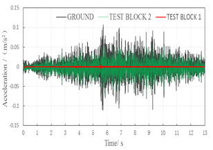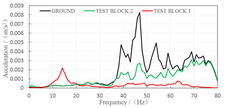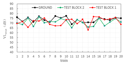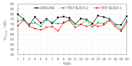 A A A Model test analysis of control effect of building foundation elastic pad on subway environmental vibration Yubin Wu, Ruixiang Song, yanan Wu 1 , Lei He, Bideng Liu, Qiong Wu, Dan Wu, Jing Zhang Institute of Urban Safety and Environmental Science, Beijing Academy of Science and Technology No.55, Taoranting Rd, Xicheng, Beijing, 100054, PR. China ABSTRACT Building foundation elastic pad is one of the important measures for subway vibration control. In order to understand the subway vibration control effect of elastic pad on superstructure, two identical concrete test blocks were poured on site near a subway line. Taking the real subway vibration load as the input source strength, the vibration isolation effect of elastic pad on upper concrete mass block was compared and analyzed; At the same time, the influence of the backfill around the underground foundation of the building on the vibration isolation effect is simulated and analyzed. The backfill has a non negligible restraint effect on the building, improves the vertical natural frequency of the "building - elastic pad" system, and then reduces the vibration isolation effect of the elastic pad. Therefore, the influence of surrounding soil on vibration isolation effect should be fully considered in the application design of building foundation elastic pad engineering. 1. INTRODUCTION The rapid development of urban rail transit has brought serious vibration and noise pollution to the surrounding environment [1] . Building foundation elastic pad is one of the important control measures of subway vibration [2-3] , At present, hundreds of buildings around the world have adopted this kind of vibration control measure, but there are few reports on the environmental vibration control effect and influencing factors of building foundation elastic pad, people still use the single degree of freedom vibration isolation theory to simply estimate the control effect. In fact, the “building - elastic pad – soil” is a complex coupling system. The underground foundation of the building is constrained by the surrounding soil, and the lateral pressure generated by the soil around the underground foundation will inevitably affect the vertical natural frequency of the "building - elastic pad" system, so as to reduce the vibration isolation effect of the elastic pad on the superstructure, At the same time, the surrounding soil, as the propagation medium of vibration elastic wave, has an impact on the vibration response of buildings. This paper systematically studies the influence law of the surrounding soil of building foundation on the vibration isolation effect by using the method of field model test. The research results can provide reference for engineering application. 2. MODEL TEST SCHEME Concrete mass blocks with the same geometric dimensions are poured near the subway line site. Polyurethane elastic pads are pasted at the bottom and four sides of one mass block to simulate the building structure with elastic pad vibration isolation measures (referred to as test block 1 in this paper), and the other mass block is not paved with any elastic pads for comparison of vibration 1 854718393@qq.com isolation effect and reference object (referred to as test block 2 in this paper). The length, width and height of the test block are respectively 1m × 1m × 1m, square concrete test box is poured around the outside of test block 1, with wall thickness of 0.2m and height of 1.1m; The inner wall of the test chamber is 0.5m away from the test block, and the middle is filled with backfill material. The site photos of concrete test block and test box are shown in Figure 1. There are two subway lines in operation around the model test site. The subway train running on the ground shows that it has a very obvious impact of environmental vibration. This test takes the actual subway environmental vibration as the excitation load, which can truly reflect the vibration isolation effect of the elastic pad under the subway vibration load. Test block2 Test block 1 Test box Back fill Test box Test block1 Test block2 Side pad Bottom pad Figure 1: Test model Figure 2: Schematic diagram of model test Based on the mass of the model test block and the physical and mechanical properties of the elastic pad, the experimental design of the vibration isolation performance of the elastic pad is carried out. The concrete test mass is about 2400Kg. Polyurethane elastic pads with side length of 13.4cm are laid at the four corners of the bottom of the concrete test block, and the thickness of the elastic pad is 5cm. Figure 2 is the schematic diagram of the model test. The maximum static load limit of the tested elastic pad material is 0.35N/mm 2 , the maximum short-time overload limit is 4N / mm 2 , the mechanical loss factor is 0.07, the static elastic modulus is 2.55N/mm 2 , and the dynamic elastic modulus is 3.35N/mm 2 . Figure 3 shows the stress deformation relationship curve of the elastic pad when the elastic pad is laid (shape factor q = 1.5), and Figure 4 is the relationship curve between the compressive stress of the elastic pad and the natural frequency. It can be seen from Figure 3 and Figure 4 that the compressive stress of the elastic pad in the model test in this paper is about 0.334 N / mm 2 , and the design load is within the reasonable working range of the elastic pad. Under the same load pressure, the thicker the elastic pad, the lower the natural frequency of the vibration isolation system. When the compressive stress in the model test in this paper is 0.334N/mm 2 and the thickness of the elastic pad is 5cm, the natural frequency of the vibration isolation system can reach 7Hz. In order to simulate the damping effect of the side pad of the underground foundation in the actual project, polyurethane and polystyrene board protective materials are pasted around the concrete test block. Specific load / (N/mm 2 ) Specific load / (N/mm 2 ) Deflection / mm Natural frequenc