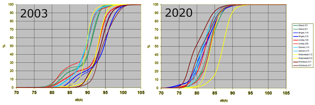 A A A Long-term evolution of noise annoyance depends on the type of transportation noise - What are the main drivers for the observed trends? Jean-Marc Wunderli 1 Empa, Swiss Federal Laboratories for Materials Science and Technology, CH-8600 Dübendorf Mark Brink 2 Federal Office for the Environment, CH-3003 Bern ABSTRACT Transportation noise annoyance has been investigated in a widely standardized way over the last decades, which allows studying the evolution of exposure-annoyance relationships over time. A temporal comparison reveals an increase of high annoyance in recent studies for railway and aircraft noise, compared to rather stable relationships for road traffic noise. Yet the reasons for these disparate developments remain only little explored. In this paper, potential explanations for the observed divergences are discussed, namely changing values and expectations in society, changing semantics of words used in survey instruments, changes in the attitude towards the different types of traffic, and changes in exposure strength and exposure characteristics. On that basis, considerations are made about the suitability of noise annoyance as a noise effect informing noise limits. 1 INTRODUCTION Based on a plethora of socio-acoustic studies carried out in the past decades, there seems to be a clear indication of an ongoing increase of aircraft noise annoyance at a given average noise exposure level, at least until about 2010 [1, 2]. A similar trend can be observed with railway noise [3] while road traffic noise annoyance seems to have been relatively stable over time [4]. In other words, the (European) population tends to be more sensitive to noise levels from railways and aircraft that were formerly tolerated, while more or less retaining the level of annoyance from road traffic noise over the years. In this discussion paper, we explore potential explanations for these divergent observations. In particular, we ask why aircraft and railway noise annoyance has increased, whereas road traffic noise annoyance has not (or at least not that much). However, there is no full consensus in the scientific community whether these trends really exist and if they do, which potential explanations seem plausible. For aircraft noise, Brooker argued that the statistical evidence for an upward annoyance trend is rather weak (e.g. [5]) and Gjestland denied the existence of such a trend completely [6], which in turn stirred an ongoing debate [7, 8]. 1 jean-marc.wunderli@empa.ch 2 mark.brink@bafu.admin.ch Fh inter.noise 21-24 AUGUST SCOTTISH EVENT cans ee 2022 We will in this paper not try to empirically substantiate that a trend towards more annoyance (regarding aircraft and railway noise) does exist. We simply assume that it does. On the same note, this discussion paper does not present a clear-cut explanation for the question at stake, but rather adds some thoughts to the current discussion, which has already found expression in various publications [1, 2, 9] (the most notable and up to date one being the ICBEN 2017 keynote paper from Guski [2], from which we have generously helped ourselves here...). Various factors are discussed in the literature as possible reasons for the increase in annoyance, but none of them can, in our view, satisfactorily explain the observed trend. Here, we will delve into one new idea in particular, namely that the technical progress and the successes of noise abatement at the source themselves (e.g., ever quieter aircraft engines or enhancements in the railway rolling stock) may have shifted the acoustic "comfort expectations" in the population in the course of recent decades. Finally, the paper asks whether the degree of annoyance is really a suitable parameter for tightening legal exposure limits. Before doing so, we will in the next chapter briefly summarize the developments on the exposure side first. 2 OBSERVED CHANGES IN NOISE EXPOSURE FOR ROAD, RAIL, AND AIRCRAFT NOISE IN THE LAST DECADES We will in the following shed some light on the development of transportation noise exposure, individually for the three sources under consideration. The focus will thereby be on changes of vehicle fleet emissions as well as traffic volumes, while local noise abatement strategies will not be discussed in detail. The identified general trends are based on data from Switzerland. Nevertheless, we believe that they should be comparable at least with those in other European countries. We restrict ourselves to a time period reaching back to the mid 1980's. 2.1 Emission of road vehicles An ideal data basis for discussing changes in road traffic noise exposure are long-term measurements, including traffic counts, at representative locations. Since 2004, road traffic noise is permanently measured along the north-south highway corridor through Switzerland at four locations, as part of the project to monitor the environmental impact of transalpine freight traffic [10]. Based on this dataset, it can be shown that the emission of the vehicles, passenger cars as well as trucks, did hardly change over the years. In some cases, even an increase of emission was detected. This observation was confirmed by an extensive study that analyzed pass-by levels of approximately 180'000 vehicles at 980 locations between the years 1998 and 2017 with indicated speeds of 50, 80 and 120 km/h [11]. The authors found an average decline of emissions of passenger cars travelling at 50 km/h of approximately 2 dB, but a slight increase for trucks of 0.5 dB. At higher speeds, an average increase of levels of 1.5 and 3.0 dB was found for passenger cars and trucks respectively. These results indicate that engine noise was successfully reduced over the years, but rolling noise increased instead. Most certainly, this is due to the tendency towards heavier vehicles and thus wider tires. An alternative to assess the change of noise emission over time is to compare different emission models, as they normally rely on extensive m