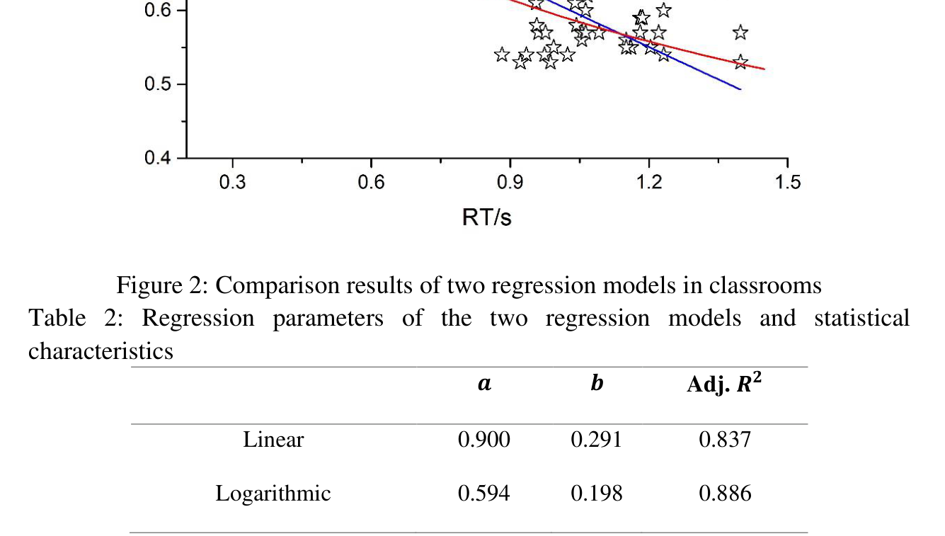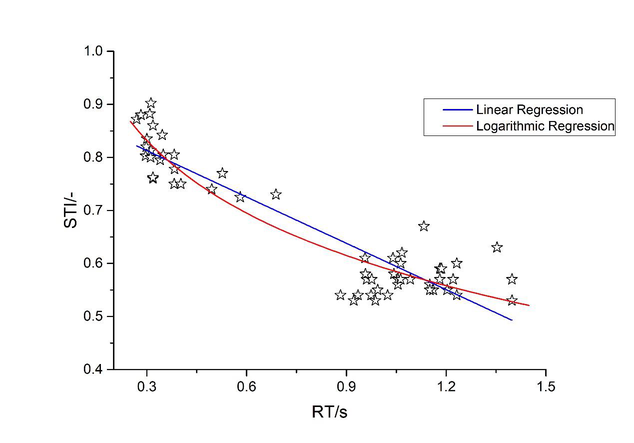 A A A A prediction model of speech transmission index based on reverberation time in the non-native linguistic context Da Yang 1 Key Laboratory of Cold Region Urban and Rural Human Settlement Environment Science and Technology, Ministry of Industry and Information Technology, School of Architecture, Harbin Institute of Technology. Qi Meng 2 Key Laboratory of Cold Region Urban and Rural Human Settlement Environment Science and Technology, Ministry of Industry and Information Technology, School of Architecture, Harbin Institute of Technology. Yue Wu 3 Key Laboratory of Cold Region Urban and Rural Human Settlement Environment Science and Technology, Ministry of Industry and Information Technology, School of Architecture, Harbin Institute of Technology. Fangfang Liu 4 Key Laboratory of Cold Region Urban and Rural Human Settlement Environment Science and Technology, Ministry of Industry and Information Technology, School of Architecture, Harbin Institute of Technology. ABSTRACT High speech intelligibility is an essential requirement for classrooms, especially in relation to non-native students. The speech transmission index (STI) was proved as the most relevant acoustic parameter to assess speech intelligibility. In this paper, twenty- seven classrooms for non-native teaching purposes were selected for investigation. Physical acoustic measurements were conducted in these classrooms, and numerical simulation verification was determined by ODEON version 16. The relationships between STI values and RT values were fitted based on non-linear curve fitting regression models. In this paper, three primary forms of non-linear curve fitting regression models were employed for predicting curves. A logarithmic function was selected as the basic regression equation to describe the effects of RT values on STI 1 da.yang@hit.edu.cn 2 Corresponding author: mengq@hit.edu.cn 3 wuyuehit@hit.edu.cn 4 liufangfang@hit.edu.cn worm 2022 values. The results showed that STI values increase with the decrease of RT values for all age groups. From the verified results, it was possible to propose the predictive equation that presents the best accuracy in predicting the experimental data for non- native teaching purposes. The prediction model is expected to estimate STI values by using RT values during the early design stage in a non-native linguistic context. 1. INTRODUCTION Good acoustic quality is an essential requirement for classrooms to guarantee verbal communication between teachers and students [1]. Evidence shows that poor room acoustics, such as excessive noise and reverberation, reduce speech intelligibility in a classroom and interrupt verbal communication between teachers and students [2]. Speech intelligibility is highly correlated with classroom acoustic conditions. Previous studies revealed the effects of various acoustic descriptors (e.g., speech transmission index STI, clarity C80, definition D50, signal-to-noise ratio SNR, useful-to-detrimental energy ratio U50, etc.) on speech intelligibility [3-12]. Among these, RT and STI are the most representative acoustic parameters to assess acoustic properties in classrooms. STI is regarded as the most suitable parameter to evaluate speech intelligibility by only one index [13]. RT is well known and can be easily estimated with simple equations, especially in the early design stage for architects. In accordance with the formal analysis, it is useful to summarize prediction equations to estimate STI values in an early design stage. Previous studies proposed empirical equations to predict STI values based on reverberation times in the native linguistic context. Escobar and Morillas [14] conducted t acoustic measurements in 17 Spanish classrooms. The authors proposed a linear and a logarithmic regression equation to describe the relationships between RT and STI. Nowoswiat and Olechwska [15] investigated an experimental and numerical analysis to obtain a quick determination of the STI by knowing the RT of the room in Poland. The STI was described using a logarithmic function with the room RT. Galbrun and Kitapci [16] are investigating the accuracy of the speech transmission index as dependent on reverberation and signal-to-noise ratio. Leccese et al. compared the most significant equations proposed in the literature using the RT and STI values obtained from a measurement campaign at the School of Engineering of the University of Pisa on a sample of 11 educational rooms [17]. The acoustic properties of classrooms are essential to quickly assess their acoustic condition, especially speech intelligibility in the architecture design stage. The mentioned literature attempted to estimate STI, which is most correlated to speech intelligibility by RT values for its easy measurements in their native linguistic context. However, with the increased interaction between multilingual education, the importance of speech intelligibility in non-native language teaching draws more attention to architecture design. This paper takes classrooms in Hong Kong as case worm 2022 studies to propose a prediction model of STI based on RT in non-native linguistic. It is due to English as the second language among local citizens being widely used in education. The results are expected to give suggestions to architects for designing non- native teaching classrooms. 2. EXPERIMENTAL METHOD 2.1 Classrooms for investigation In the current study, 27 classrooms were selected in a middle school (9 classrooms) and a university (18 classrooms) in Hong Kong as the objectivities. The selected middle school classrooms were not decorated with acoustical treatment (lime walls, cement floors, etc.). In comparison, the selected classrooms in the university were well decorated with acoustical treatment (sound absorptive panels, sound absorptive ceilings, floor isolation mat, etc.). All the classrooms were rectangular in shape, and the temperature in Hong Kong during the investigation was around 27 𝐶 ⬚ 𝑜 , a