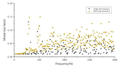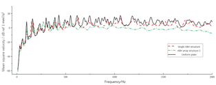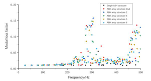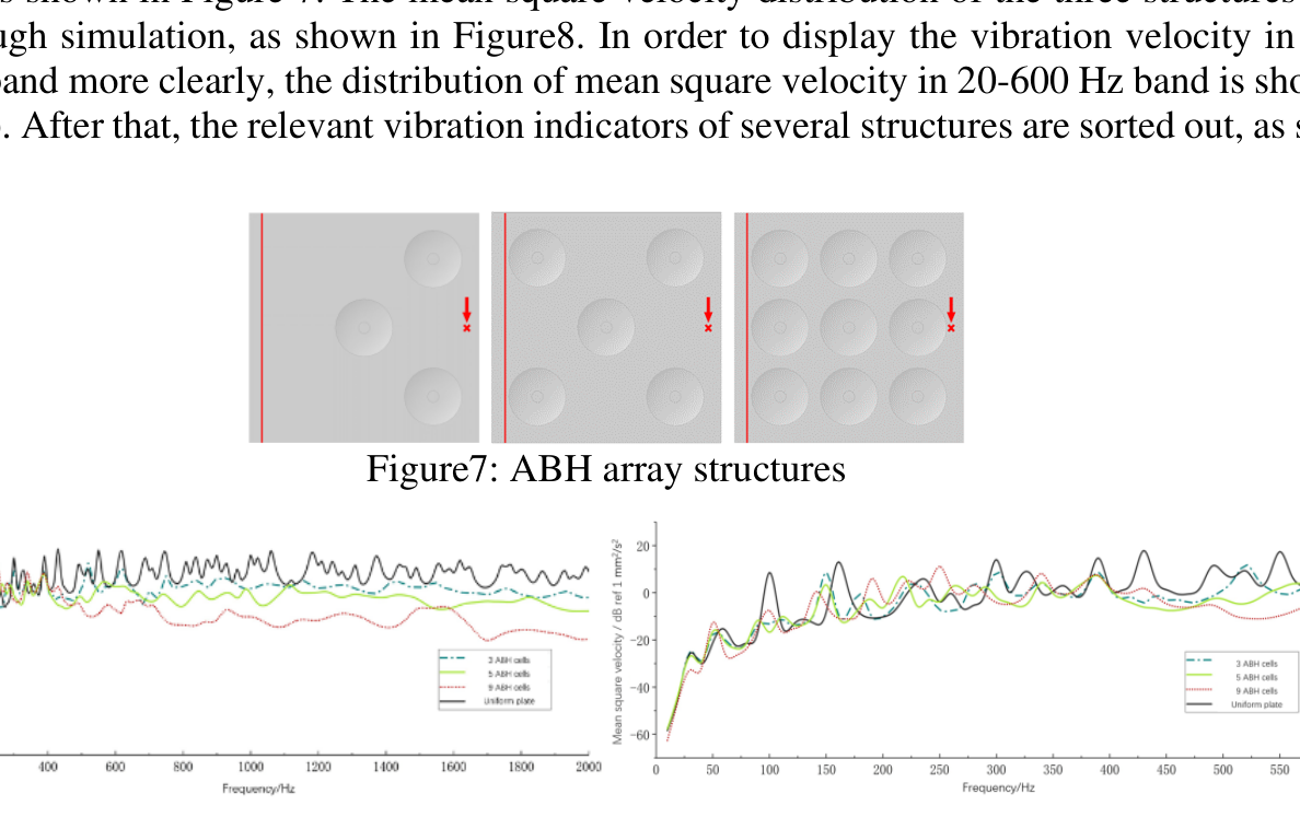 A A A Influence of structural form on the acoustic black hole array coupled with damping layers Zhengcheng Yao 1 School of Transportation Science and Engineering, Beihang University South 3 rd Street, Gaojiaoyuan, Changping District, Beijing, 102200, China Xiandong Liu 2 School of Transportation Science and Engineering, Beihang University South 3 rd Street, Gaojiaoyuan, Changping District, Beijing, 102200, China Haoming Liang 3 School of Transportation Science and Engineering, Beihang University South 3 rd Street, Gaojiaoyuan, Changping District, Beijing, 102200, China Yue Bao 4 School of Transportation Science and Engineering, Beihang University South 3 rd Street, Gaojiaoyuan, Changping District, Beijing, 102200, China Yingchun Shan 5 School of Transportation Science and Engineering, Beihang University South 3 rd Street, Gaojiaoyuan, Changping District, Beijing, 102200, China Tian He 6 School of Transportation Science and Engineering, Beihang University South 3 rd Street, Gaojiaoyuan, Changping District, Beijing, 102200, China ABSTRACT Because of the characteristics of manipulating bending wave, acoustic black hole (ABH) structures can efficiently concentrate vibration energy in the center. Other than single ABH structures, the ABH array or damping layers can be used to have a better performance in vibration reduction and noise control, which have great engineering application prospects of plate parts. In order to explore the influences of ABH array on vibration and noise attenuation, finite element models of two-dimensional ABH array coupled with damping layers are established in this paper to study the effects of arrangements and number of ABH cells on dynamic characteristics. Firstly, this paper analyses the influences of array embedded with three ABHs on the modal loss factor and vibration characteristics of the structures as well as the effects of different arrangements. Sec- ondly, the array with different number of ABH cells were established to study the effects of the number of elements on the vibration response of the plate. Finally, the structure-sound coupling 1 yaozc@buaa.edu.cn 2 liuxiandong@buaa.edu.cn 3 sy1913122@buaa.edu.cn 4 baoyue@buaa.edu.cn 5 shanych@buaa.edu.cn 6 hetian@buaa.edu.cn worm 2022 models were established to study the acoustic radiation characteristics and explain the noise re- sponse of the array plate. This study provides a reference for the design and application of the plates embedded with ABH array. 1. INTRODUCTION In a variety of applications, there is an increasing demand for advanced structures with lightweight and high vibration and noise reduction capabilities [1]. Especially in automotive applications, it is often necessary to meet the requirements of interior noise and lightweight, and the exploration of relevant approaches needs new theories. Acoustic black hole (ABH), as a new wave manipulation method, provides a new method for vibration and noise control of structures [2]. Using the ABH structure on the plate can make the bending wave converge in a specific region, and better vibration and noise control can be achieved by using less damping material in the region with higher energy density, along with the improvement of energy dissipation efficiency of damping material. Therefore, ABH effect has the potential to solve the contradiction between vibration and noise control of body panel and structural lightweight. The ABH effect was first proposed by Pekeris [3] in 1946. He found that no reflection of waves occurred in inhomogeneous stratified medium and the wave velocity decreased to zero as the depth of the profile increased. In 1988, Mironov [4] found that ABH effect also exists in wedge-shaped structures, that is, in a plate whose thickness changes in a specific power-law form, the bending wave velocity will decrease as the thickness decreases. Due to the limitation of machining, there will be some truncation at the end of the structure, which will obviously weaken the ABH effect and result in large amount of reflection of bending wave in the plate. Krylov [5,6] found that the presence of a small amount of damping material on wedge-shaped surfaces with a power-law profile can signifi- cantly reduce the reflection coefficient. The ABH structure is mainly divided into one- and two- dimensional forms, in which the two- dimensional ABH is materialized by a cylindrically symmetrical indentation of power-law profile whose exponent is equal or larger than two. For practical mechanical structures such as automobiles and ships, it is not feasible to fabricate one-dimensional ABH structures at the outer edges. Mean- while, the two-dimensional ABH structures can be embedded in most positions of the plate, and its layout is more diverse and flexible, which has a wider application range and more research value. After Krylov [7] first proposed this form of ABH structure, Georgiev et al. [8] carried out the first experimental study, and verified that when fitted with the same damping material, the velocity con- ductivity and vibration attenuation of the elliptic plate structure with embedded two-dimensional ABH were significantly lower than those of the uniform plate structure. Conlon et al. [9] proposed the formula of the cut-on Frequency of two-dimensional ABH structure, indicating that the external radius of ABH should be enlarged to reduce the cut-on Frequency without changing the material. However, for automobile and other structures, due to the requirement of compactness, it is not prac- tical to simply expand the radius in order to achieve the effect of vibration and noise reduction in wide band, and the plate structure embedded with a single acoustic black hole is difficult to play a role in low band [10]. In this case, ABH arrays with flexible arrangement and the potential of broad- ening the effective control band of the bending wave has become a new research direction. The study of two-dimensional ABH can be carried out by analytical methods. 