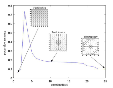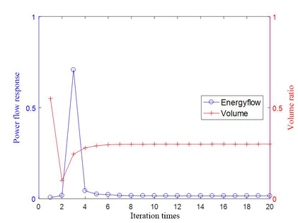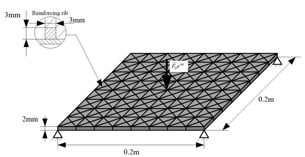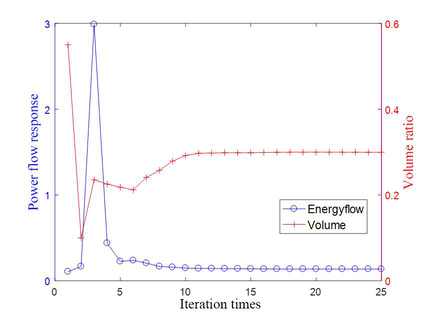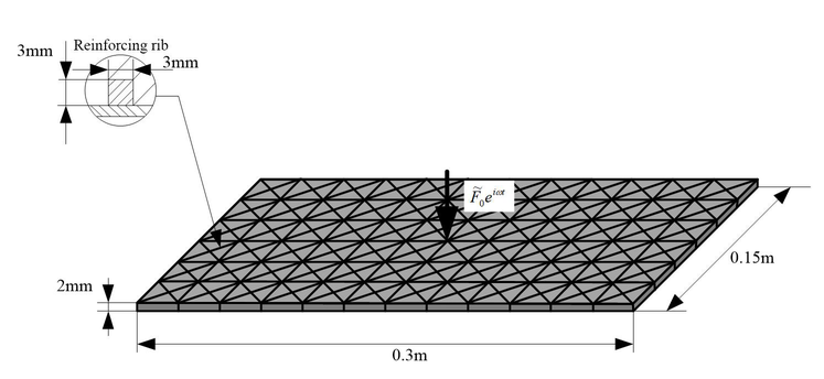 A A A Dynamic Layout Optimization of Stiffeners in Plate Structures Based on Power Flow Response Xiaoyan Teng 1 Harbin Engineering University Laboratory 2035, Building 61, Harbin Engineering University, Heilongjiang Province, China Huan Yu 2 Harbin Engineering University Laboratory 2035, Building 61, Harbin Engineering University, Heilongjiang Province, China Xudong Jiang 3 Harbin University of Science and Technology, Heilongjiang Province, China ABSTRACT By minimizing power flow response, a method of moving asymptotes was adopted to optimize the power flow model by adding and deleting corresponding elements and changing the material setting position in the configuration. To improve the dynamic performance of the whole structure under the premise of slightly increasing the mass of the whole structure, the Rayleigh damping model under the combined action of the environment and the characteristics of the material is established, and the SIMP (Solid Isotropic Material With Penalization) model of the coupling structure is used to calculate the power flow response of the plate-reinforced coupling structure, so that the vibration response of the structure is more accurate.By solving the sensitivity of power flow response, it is concluded that the essence of stiffened layout optimization is to optimize the position of coupling beam on the substrate. Through numerical example analysis, the optimal configuration and power flow response results under different boundary conditions, different shapes and different loading frequencies are compared, which is of great significance for the optimization design of stiffened plate structure layout. 1. POWER FLOW MODEL OF STRUCTURE 1.1. Structure Energy Flow Transfer Analysis The transmission of vibration in the structure is actually the transmission of energy in the physical definition, and the transmission of vibration is generally defined by power flow. Power flow is defined as the energy flowing over an area perpendicular to the vibration direction for a certain period of time. The excitation of the vibration system can be expressed as f t = F cos ωt , F is the amplitude of the loading force, and ω is the loading frequency. For the excitation structure, the corresponding velocity response is v t = V cos ωt + θ , V is the velocity amplitude, θ is the 1 tengxiaoyan@hrbeu.edu.cn 2 1048858@qq.com 3 xudongjiang@sina.com 21-24 AUGUST SCOTTISH EVENT CAMPUS ? O? ? GLASGOW phase difference between the excitation and the velocity response. The excitation and velocity responses are expressed as follows : � ෨ �= � ෩ � ��� , (1) ��= � ෩ � ��� , (2) where ·ǁ is the complex variable, and i is the imaginary unit. Considering the actual part, there is : ��= ��� ෨ � = 1 2 �෨�+ �෨� ∗ , (3) ��= ���� = 1 2 ��+ �� ∗ , (4) Here, ��· represents the selection of the real part for, and () ∗ represents the conjugate transpose under complex calculation. Accordingly, the structural power flow at t time is calculated as follows : ��= ��� �= ��� ෨ ����� = 1 4 �෨� + �෨� ∗ ��+ �� ∗ , (5) One loading period, namely, the average power flow in interval 2�/� , is expressed as follows : �= � ��� ෨ � ���� න ��= 1 2�/� 2 �෩∗�෩cos � , (6) 2� 0 The formula for calculating instantaneous complex power flow in mathematical definition is as follows : �� = � ෨ ���= � ෩ � ෩ � 2��� , (7) �= � The complex power flow in a loading cycle is calculated as follows : 2�/� � ෨ ��� න ��= 0 , (8) 2� 0 According to the comparison of formula (6) and formula (8), it can be found that the average value of complex power flow in a cycle is 0, so the power flow analysis of the structure is mainly based on physical power flow. In the above analysis and discussion on topology optimization theory, it can be found that its essence is to improve the specific performance of a certain aspect of the structure by changing the configuration of the material distribution, expand the structural design space, and also have a strict mathematical and physical basis, and the realization of the moving asymptote method ensures the existence of the solution. 1.2. Rayleigh Damping Model In general, the system will lose the transmitted energy when it generates vibration, which is described by damping in dynamics. In fact, when the structure vibrates, there are many factors affecting the damping, so the mechanism of energy dissipation is very complex. But generally, the damping factors are : First, the material itself has viscous characteristics, so that the stress is not only related to the strain but also related to the strain rate, which can be called material damping ; the second is the energy loss caused by external factors such as base and air resistance in structural vibration, which can be called environmental damping. In fact, the energy consumption in vibration is mostly caused by the damping of the material itself and the external environment. 21-24 AUGUST SCOTTISH EVENT CAMPUS ? O? ? GLASGOW �= ��+ ��ሶ , (9) The material damping constitutive model in this paper is Kelvin model, which is expressed as : Here, � is the stress vector, � is the strain vector, �ሶ is the stress change rate vector, D is the elastic coefficient matrix, and � is the viscosity coefficient matrix. Then replace the formula (9) with the left side of the virtual work equation (10) : �� � ∙�ҧ න �� , (10) �� � � න ��= �� � � න ��+ � � � � The structural displacement u is expressed by the interpolation function as : �= �∙� , which is substituted into : �� � � න ��= �� � �∙�+ � � ∙� , (11) � � � �� න �� , (12) �= � � � = � � � �� �� , (13) � represents the g