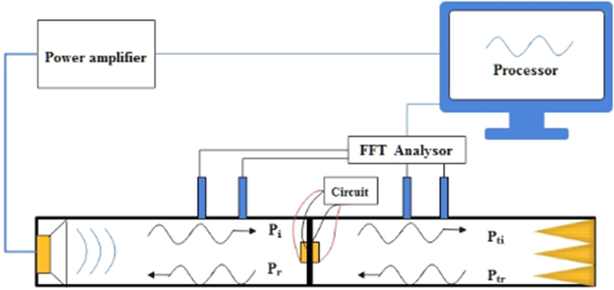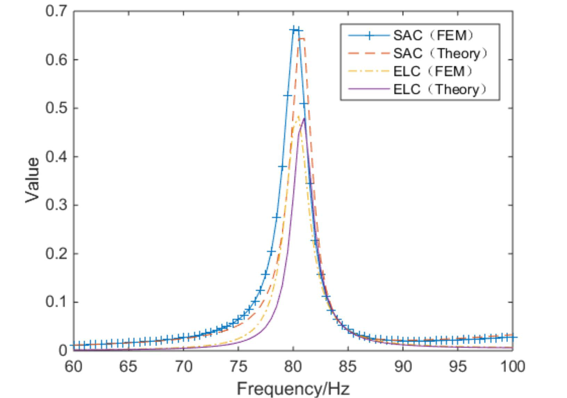 A A A Vibration and acoustic radiation control of a panel attached to piezoe- lectric shunt oscillators Yongyuan Zhang 1 1.Key Laboratory of Noise and Vibration Research, Institute of Acoustics, Chinese Academy of Sciences, No. 21 North 4th Ring Road, Haidian District, Beijing 100190, China; 2.University of Chinese Academy of Sciences, Beijing 100049, China Daoqing Chang 2 1.Key Laboratory of Noise and Vibration Research, Institute of Acoustics, Chinese Academy of Sciences, No. 21 North 4th Ring Road, Haidian District, Beijing 100190, China; 2.University of Chinese Academy of Sciences, Beijing 100049, China ABSTRACT In this work, the vibration of a single-panel attached with piezoelectric shunt oscillators (PAPS) and its acoustic radiation are modeled theoretically. The vibration equations are derived based on the principle of minimum potential energy and acoustic impedance of PAPS. The sound absorption coefficient (SAC), energy loss coefficient (ELC), and transmission loss(TL) of PAPS are calculated based on the acoustic impedance and displacement response of PAPS. Then theoretical results are compared with those of finite element simulation, and the results are relatively consistent. Finally, sound absorption and isolation experiments of PAPS at non-eigenfrequency near (1,1) modal are conducted in a standing wave tube. 1. INTRODUCTION It is well known that most of the noise affecting people's daily life comes from the vibration of structures, while flexible structures are the main part of the sound source and propagation path. Single-panel system is a common model of flexible structures in real life such as windows or exte- rior barriers of automobiles, and it is a foundation to study double-panel system, flexible cavity sys- tem and so on. Further study about the theoretical modeling, experiments and regulation rules of single-panel system's sound absorption and sound isolation is realistic demand. Medium and high frequency sound absorption and sound insulation of single-panel system can be solved by traditional means, such as acoustic cotton, acoustic tip split, foam metal, sound insula- tion walls and passive vibration isolators, etc .However, vibroacoustic control of traditional means are facing challenges of poor effect or good effect with high cost at low frequencies. In recent years, low-frequency passive acoustic structures and low-frequency acoustic metamaterial, have received considerable attention and achieved lots of theoretical and experimental results. Among them, Pie- zoelectric Shunt Oscillator (PSO) is widely used in passive and semi-active control of flexible 1 969677926@qq.com 2 changdq@mail.ioa.ac.cn inter.noise SCOTTISH EVENT CAMPUS ? O ? ? structures, due to its high electromechanical coupling coefficients, robustness, effectiveness and adjustability at low frequencies[1-4]. A single-panel system attached with piezoelectric shunt oscillator (PAPS) can be effectively controlled by adjusting the circuit parameters at low frequencies. There have been many researches about theory and experiments of single-panel attached to piezoelectric shunt oscillator(PAPS). As for sound absorption, Kim J combined PAPS with sound-absorbing material to achieve noise con- trol in a wide frequency band for plate structures [5]. Zhao and Kim J investigated physical parame- ters' effects on the acoustic radiation of PAPS [6].Liu studied the reflection coefficient of a cavity whose bottom is composed of PAPS [7]. Chang studied the sound absorption coefficient of PAPS backed by a rigid cavity[8].Numerical calculation and experimental verification were given after- wards[9].Moreover, Chang studied the SAC of a structure composed of a micro-perforated plate, a rigid cavity and a PAPS, which has two sound absorption peaks [10]. Gardonio proposed a broad- band circuit parameter control algorithm based on monitoring the current magnitude in the piezoe- lectric shunt circuit[11]. As for sound insulation, Aboelsooud established a finite element numerical model of PAPS and used PSO to control the vibration of an aluminum panel[12]. Later Chen inves- tigated the modeling method, frequency characteristics, and electromechanical coupling characteris- tics of piezoelectric network panels[13]. Zhang investigated the TL of PAPS using equivalent me- dium method and finite element simulation[14]. It can be seen that the PAPS can be used for both low-frequency sound absorption and low- frequency sound insulation. The difference is mainly in the selection of shunt impedance, which can affect the electromechanical stiffness and damping of PAPS caused by piezoelectric effect. So in this work, a precise vibroacoustic vibration equation is established to numerically study the TL, SAC and ELC of PAPS. Then FEM and experiment results are compared with theoretical results and the regulation rules of PAPS at non-eigenfrequency are studied. inter.noise SCOTTISH EVENT CAMPUS ? O ? ? 2. Theoretical Modeling of PAPS 2.1. Vibration equations of PAPS In this chapter, the vibration equations of PAPS is first derived. The host panel, which is solid- supported at all the four edges, is rectangular as well as the rigid waveguide. The PSO is pasted at the center of panel to control the frequencies near (1,1) modal on both sides (two sheets) or one side(one sheet). The material of PSO is PZT-5H, while the host panel is resin. The vibroacoustic model of PAPS is given in Fig. 1 as below: Figure 1: Vibroacoustic Model of PAPS Non Reflection Interface Piezoelectric Sheet ee Host Panel \\ Rigid Cavity Non Reflection Interface inter.noise SCOTTISH EVENT CAMPUS ? O ? ? 6U = DX >, K,,(4, J )ajda; j=1 i=1 In Fig. 1, is a pure plane acoustic wave formed in the rigid waveguide below its cut-off frequen- cy, and thus forces PAPS to vibrate and generate transmission sound. is the scattered sound while is the radiated sound. The bottom of the rigid waveguide is a none-reflection interface as well as the top, letting 2h. A4 2h. A424. 2h. A4d