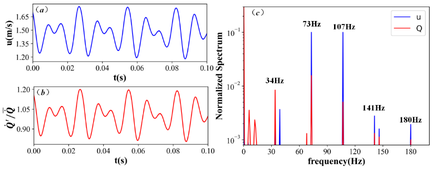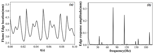 A A A The response of a conical flame to a dual-frequency excitation Jianyi Zheng 1 , Lei Li 2 , Guoqing Wang 3 , Liangliang Xu 1 ,Sirui Wang 1 , Xi Xia 1 , Fei Qi 1 1 School of Mechanical Engineering, Shanghai Jiao Tong University, 800 Dong Chuan Rd, Minhang, Shanghai, 200240, P. R. China 2 National Key Laboratory of Science and Technology on Aero-Engine Aero-thermodynamics, Research Institute of Aero-Engine, Beihang University, Beijing, 100191, P. R. China 3 King Abdullah University of Science and Technology (KAUST), CCRC, Thuwal, 23955-6900, Saudi Arabia ABSTRACT This work investigates the response of a conical premixed flame to a dual-frequency excitation, based on the integrated CH* signal collected from a photomultiplier tube (PMT), the upstream velocity disturbance measured by a hotwire, and the chemiluminescence signal captured by high-speed imaging. The results show that, in addition to the excitation frequencies, a notable flame response can also be observed at the interaction frequency, where the corresponding velocity fluctuation is relatively small. This result means that, at the interaction frequency, the velocity fluctuation contributes little to the flame response. Such interacted response generally occurs at intermediate excitation frequencies but disappears as either excitation frequency is below the cut-off frequency. And it increases linearly with the excitation amplitude, with nearly zero dependence on the phase difference. Furthermore, the flame front is extracted based on the chemiluminescence images to analyze the flame area fluctuation. The resultant phase response implies that the fluctuation of the difference frequency propagates downstream convectively, similar to that of the excitation frequencies. Interestingly, the flame area fluctuation at the difference frequency shows significant response and a low-pass characteristic, whereas the CH* fluctuation approaches zero at those low frequencies. 1. INTRDUCTION The resonant coupling between the unsteady combustion heat release and the acoustic system leads to combustion instabilities in aero-engines or land-use turbine combustors[1–3]. When combustion instability occurs, the flame surface is usually disturbed by acoustic waves at one fundamental, harmonic, or multiple frequencies. The periodically oscillating heat release rate in turn power the acoustic wave inducing extremely harmful large-amplitude pressure pulsations[4]. The low-order acoustic network model is a general approach to analyzing and predicting the combustion instability, in which the acoustic part is described by the transfer matrix, and the flame response is generalized by a compact flame release heat model. The combustion oscillation frequency and amplitude of the system can be determined by solving the above models, which require accurate flame response characteristics at specific frequencies. Studying the unsteady heat release by exciting laminar premixed flame with loudspeakers is an effective method to investigate the interaction of acoustic waves and flames. This has prompted many experimentally[5–7] and analytically[8– 10]studies on the dynamics of laminar premixed flames under acoustic excitation. In addition, numerical simulation[11–14] can also be used to solve the problem. To accelerate the calculation, broadband signals containing a large number of frequencies are used as disturbances[15–17] in simulation, which may cause the superposition of interaction disturbances and original responses, resulting in deviations in simulation results. Besides, multiple thermoacoustic modes can coexist at the same time during combustion instability with multiple frequencies mutually synchronized[18,19]. The above problems emphasize the importance of investigating the flame response characteristics under multiple frequencies. There has been much research on flame response under single frequency excitation. The G- equation-based laminar premixed flame model has been able to predict the linear flame response under single-frequency excitation. Fleifil et al. [20] derived a first-order filter model to describe the responses of the flame to the axial acoustic disturbances in a simple Poiseuille flow. Ducruix et al. [21] extended such a model to general axisymmetric conical flames with a uniform, one-dimensional velocity excitation. Inspired by the experimental measurements[22], Schuller et al. substituted the uniform velocity excitation with a convective wave and obtained a better agreement with the experimental results[23]. Birbaud et al. then identified the propagation mode in the fresh stream based on a Strouhal number and emphasized the influence of the feedback effect of the flame front on the fresh stream dynamics[24]. Cuquel et al. investigated the influence of confinement sidewalls on the response of premixed conical flame, which helps to transpose results gathered on single burners to multiple injection configurations when the burnt gases cannot fully expand due to the presence of neighboring flames[25]. The stretch effect was reported to affect the flame speed fluctuation, which becomes comparable to that of the flame surface area and is responsible for the experimentally observed filtering effect in which the flame wrinkles developed at the flame base decay along the flame surface for large frequency disturbances[26,27]. Cuquel et al. demonstrated the important role of flame foot oscillations in controlling the saturation of the phase lag[28]. Under the excitation of a single-frequency acoustic disturbance, the experimental study also found that the flame does not always exhibit a linear response, and changing the perturbation amplitude can lead to the nonlinear response of the flame[29,30], whose non-linearity is mostly in the phase of the transfer function and manifests itself as a roughly constant phase at high forcing amplitude. Compared to flames perturbed by a single-frequency acoustic wave, flames subjected to multi- frequency f