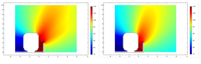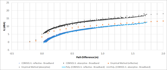 A A A Optimisation of railway noise barrier design using finite element and boundary element modelling methods César Bustos 1 Arup 7th Floor, 1 W Regent St, Glasgow G2 1RW Vincent Jurdic 2 Arup 8 St Thomas St, Winchester SO23 9HE Calum Sharp 3 Arup 8-13 Fitzroy St, London W1T 4BQ David Hiller 4 Arup 6th Floor, 3 Piccadilly Place, Manchester M1 3BN ABSTRACT The prediction of environmental noise barrier insertion loss (IL) is commonly undertaken from widely available empirical methods derived from measurements and geometrical acoustic approximations. During detailed design, the accuracy of these methods is limited when assessing the performance of non-conventional noise barriers or the sound absorption requirements. This article presents a meth- odology to optimise and improve confidence in the detailed design of railway noise barriers using a simplified numerical method. The numerical method is based on a two-dimensional hybrid finite ele- ment and boundary element analysis. It assumes an infinitely long train with pre-defined rolling, body aerodynamic and pantograph sound sources. The numerical model quantifies the effect of various parameters upon the barrier IL including material properties; area and location of sound absorbing materials; diffraction over the barrier top; and analysis of energy build-up between train and barrier. The outcome of this study can be extended to other transportation applications when designing non- conventional environmental noise barriers. 1 Cesar.Bustos@arup.com 2 Vincent.Jurdic@arup.com 3 Calum.Sharp@arup.com 4 David.Hiller@arup.com worm 2022 1. INTRODUCTION The design and implementation of environmental noise barriers is an essential part of any large trans- portation project. Through the detailed design of projects such as railways or highways, it is essential to consider and control their impacts upon the environment. Noise emission is an important aspect to assess as it has the potential to give rise to significant adverse effects upon sensitive receptors such as residential dwellings and communities. Where mitigation is required to eliminate or minimise such significant effects, environmental noise barriers are a common solution to provide screening between the source and receiver. Environmental noise barriers may be difficult to implement, especially in places where there is not sufficient space to erect the barrier, or where the barrier could itself result in other environmental impacts (e.g. landscape and visual impacts) or health and safety concerns. These barriers can also be expensive to construct and maintain, hence it is imperative that the design of such barriers must be carefully considered. There are several standard and well-established methods to predict the insertion loss (IL) 5 of a noise barrier. These methods are generally based upon empirical approximations e.g. geometrical acoustics and complemented with measurements of existing barriers. These standard methods are robust and useful at early stages of a project for a high-level assessment. However, for detailed design stages, the standard methods are limited in accuracy. These standard methods do not easily account for de- tailed parameters including: • specific geometry of barriers (e.g. cranked tops, barrier slant); • characteristics of any sound absorption; • location of absorption (e.g. on different parts of the barrier to target different sources); • energy build-up between source and barrier to consider reflections back and forth between the body of the source, the ground and the barrier; or • diffraction effects over the barrier. To assess the IL performance of non-conventionnel noise barriers, a mock-up is often built and tested, increasing significantly the design cost. This article presents a methodology developed to build a hybrid numerical model to predict IL, when the parameters listed above are considered. The numerical model built in COMSOL Multiphysics© uses a combination of Finite Element Anal- ysis (FEA) and Boundary Element Analysis (BEA) to model the propagation of acoustic energy emit- ted by a vehicle, from its dominant noise sources. The model accounts for the interaction of the acoustic waves between sources and receptors and allows a calculation of barrier IL at any point in space as a function of sound frequency. 5 Insertion loss (IL) is defined as the noise reduction provided by a barrier compared to the free field scenario. worm 2022 The numerical model allows a quantifiable assessment of different configurations in terms of barrier geometry to minimise noise and visual impact. Moreover, the numerical model enables a study of the benefits that arise from the quantity and location of sound absorbing materials so that these can be optimised. The numerical model helps improve the environmental barrier design which effectively reduces the quantity of materials used, improves its cost effectiveness and reduces maintenance re- quirements without adversely affecting the IL performance. 2. STATE OF THE ART The prediction of noise barrier performance is a widely studied subject and the literature available is extensive. The standard ISO9613.2 [1] describes a method to calculate IL from screening obstacles using the Fresnel number approximation which belongs to geometrical acoustics. The Maekawa [2] and Degout [3] methods are also based upon the same principles with additional corrections to en- hance accuracy. The Calculation of Road Traffic Noise (CRTN) [4], developed in the United King- dom, presents a simple method to predict screening correction based on path difference and on whether the receptor is the shadow zone or the illuminated zone. The study of the benefit of changing barrier top geometries and implementing absorbing materials in environmental barriers has also been studied before. K. Attenborough [5] presents an extensive list of references and examples used to predict the performance of outdoor noise barriers. Ishizuka and Fujiwara [6]