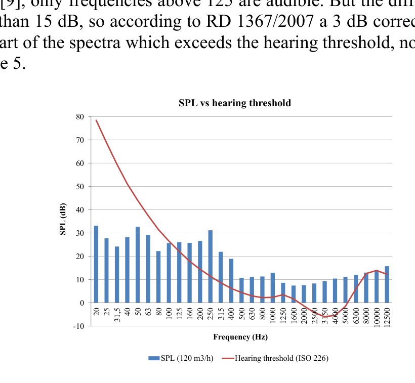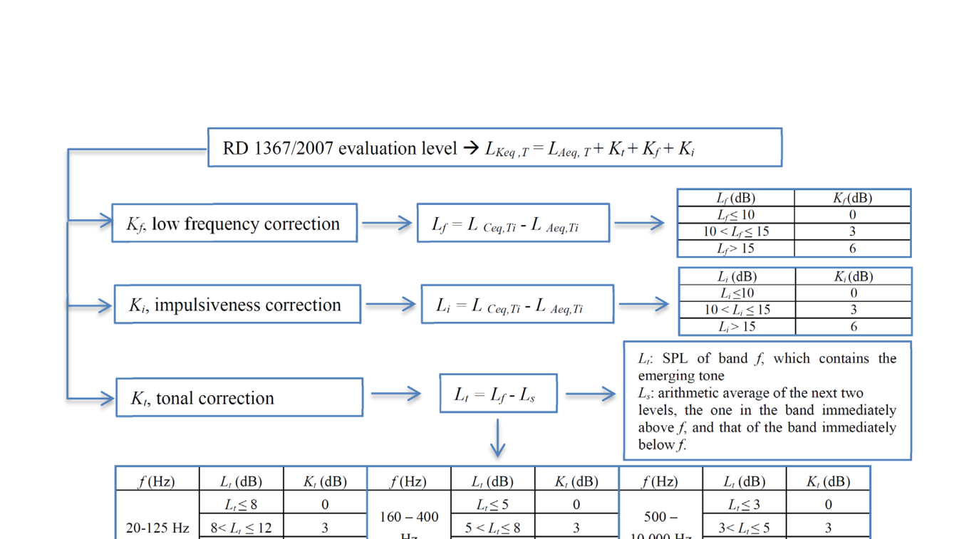 A A A Applying Spanish Acoustic Regulations to Mechanical Ventilation with Heat Recovery Systems - Case Study Teresa Carrascal 1 Amelia Romero Fernández 2 Belén Casla Herguedas 3 Eduardo Torroja Institute for Construction Science, IETcc- CSIC Serrano Galvache 4 Madrid 28033. SPAIN ABSTRACT Due to recent changes in IAQ (Indoor Air Quality) and energy efficiency requirements, MVHR (Me- chanical Ventilation with Heat Recovery) has become increasingly common in Spanish new build dwellings. Regarding acoustics, Spanish Decree RD 1367/2007 sets out limits for sound pressure levels due to building services and describes the noise measurement and assessment procedure, which applies also to ventilation noise. The assessment procedure consists of a series of measurements of different noise parameters and the calculation of corrections due to tonal, low frequency and impul- sive components. This paper shows an example of a MVHR fan unit installed in the ceiling of a common dwelling, where some measurements were performed. Based on these measurements, this paper discusses the noise measurement and assessment procedures and proposes some improvements for the Spanish acoustic regulations. In addition, it also analyses the available calculation methods (ASHRAE and VDI 2081) and their application to comply with Spanish requirements 1. INTRODUCTION The aim of this paper is to analyse the application of Spanish Decree RD 1367/2007 [1] to Me- chanical Ventilation with Heat Recovery systems (MVHR) in dwellings. This decree is an environ- mental law transposed from [2], which applies to all environmental noise sources, including building services. RD 1367/2007 includes the requirements for sound pressure levels in dwellings due to building ser- vice equipment. It also specifies the measurement and assessment procedure which will be introduced in paragraph 2, which consists of several sound pressure level measurements and the application of corrections for tonal, impulsive and low frequency noise components. 1 tcarrascal@ietcc.csic.es 2 aromero@ietcc.csic.es 3 belench@ietcc.csic.es inter.noise 2-24 august scornsuevearcanmus )())D MVHR systems have become increasingly common in new build homes because they ensure an adequate airflow with minimum thermal losses specially in winter time. These ventilation systems work continuously, 24 hours, 7 days a week, and they consist of a heat recovery unit, equipped with a pair of fans which distribute fresh air to sensitive rooms, such as bedrooms and living rooms, while extracting air from toilet rooms and kitchens. Noise produced by the unit can be transmitted to the rooms though the ductwork and grilles. This paper shows the work of the Quality in Construction Unit to measure the noise produced by a typical MVHR system in a dwelling and the suitability of the of RD 1367/2007 [1] for the assess- ment of service equipment noise. In this work, measurements using the ISO 16032 [3] were per- formed too, because this standard is referenced in the regulations of several European countries. In addition, calculations were also performed to predict noise using [4], [5], [6] and the difficulties to assess components using the available manufacture data are shown. This paper does not intend to characterise noise produced by a particular ventilation system, but to discuss the procedures of Spanish RD 1367/2007 in relation to common MVHR. 2. NOISE REGULATIONS IN SPAIN Spanish Building Code, DB HR [7], refers to Spanish Decree RD 1367/2007 [1] which is the environmental law transposed from the Directive 2002/49/CE [2] on assessment and management of environmental noise whose purpose is to prevent and reduce noise pollution. Spanish Decree RD 1367/2007 contains the noise quality objectives applicable indoors that is, the noise limit level allowed in interior spaces, and specifically the noise immission rates for different sources. In addition, RD1367/2007 includes the requirements for sound pressure levels in dwellings due to building service equipment. These requirements are regulated according to articles 24 and 25 of RD 1367/ 2007 and table B.2 of Annex II of RD 1367/2007. Table 1. Noise limit values transmitted in dwellings due to building service equipment. Table B2 from RD 1367/2007. Building use Type of room Noise limits for building service equipment L K,d L K,e L K,n Residential Living rooms 40 40 30 Bedrooms 35 35 25 Table 1 considers only the noise transmitted by a certain service equipment to an adjoining area, it deals with the noise level that each service equipment individually must not exceed. It shows the noise index L Keq, T, that is the equivalent continuous sound pressure level weighted A, (L Aeq, T ), cor- rected by the presence of emerging tonal components, low frequency components and noise impul- sive character, according to the following expression: L Keq, T = L Aeq, T + K t + K f + K i (1) Where: - K t is the correction parameter associated with the L Keq, T index to assess the discomfort or ad- verse effects due to the presence of emerging tonal components. - K f is the correction parameter associated with the L Keq, T , index to assess the discomfort or adverse effects due to the presence of low-frequency components. - K i is the correction parameter associated with the L Keq, T , index to assess the discomfort or harmful effects by the presence of impulsive noise. The maximum value of the correction resulting from the sum K t + K f + K i will not be greater than 9 dB. Figure 1 shows the procedure to obtain corrections: K f , low frequency correction, K i , impulsive correction and K t , tonal correction. Figure 1. L Keq,T evaluation level and correction calculations according to RD 1367/2007. 3. DESCRIPTION OF THE SYSTEM Decentralized ventilation systems are usually installed in multifamily dwellings in Spain, the HR unit is usually installed inside the ceiling of certain rooms, which are usually the non-sensitive rooms, such as corridors, halls or kitc
