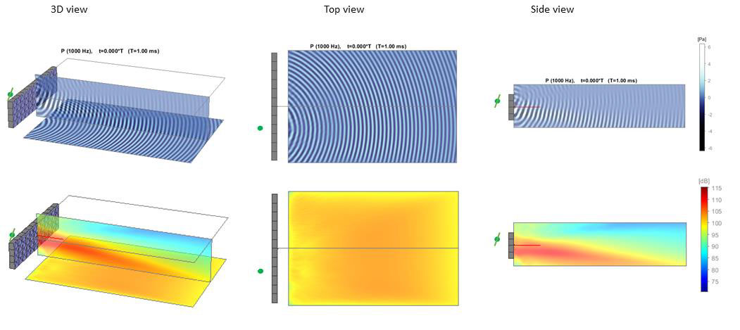A A A Volume : 44 Part : 3 Proceedings of the Institute of Acoustics Loudspeaker matrix arrays: Challenging the way we create and control sound Evert W. Start, HOLOPLOT GmbH, Berlin, Germany 1 INTRODUCTION Sampling the considerable literature1,2,3,4,5,6 about loudspeaker arrays, it’s noticed that the focus is often narrowed down to one specific technology. In particular, beamforming and Wave Field Synthesis (WFS) are covered in separate studies and seem to be unrelated, or at best only remotely related, topics. Both will be introduced briefly. Beamforming is a spatial filtering technique used to aim sound in a specific direction. There are many benefits, which include enhanced power efficiency, improved uniformity of coverage, increased direct-to-reverberant ratio, and reduced sound spill. Beamforming techniques can be broadly divided into two categories; mechanical and electronic beamforming, used in curved line arrays and steered column speakers, respectively. WFS is a spatial audio rendering method, capable of delivering a physically correct reproduction of the auditory scene. Depending on the practical implementation, the loudspeakers are distributed along a horizontal line or across a (vertical) plane. Admittedly, at first glance these technologies seem to have very little in common, but from a wave perspective, it’s obvious that they are closely intertwined. More importantly, both technologies can benefit from each other. Principles and features which are considered to be unique for one technology can be incorporated into the other, and vice versa. Using Matrix Arrays, 3D sound fields can be reproduced and controlled precisely in every direction. This opens up new ways for creating and controlling sound in functional as well as creative applications. 2 ARRAY PRINCIPLES 2.1 Wave Interference The main underlying physical principle of any array is wave interference. Sound waves emitted by multiple sources interact with each other. Constructive interference occurs when the individual sound waves reinforce each other, building a wave of greater amplitude. Destructive interference occurs when the waves oppose each other, resulting in lesser amplitude. For waves that are neither fully in-phase nor out-of-phase, partial reinforcement or cancellation occurs. By combining multiple loudspeaker drivers into an array, sound can be reinforced in a specific direction, while being attenuated in other directions. Similar to frequency filters boosting or attenuating certain parts of a signal spectrally, arrays allow spatial filtering of the radiated sound field. 2.2 Beamforming The traditional way of controlling directivity is by physically pointing a horn-loaded loudspeaker to the audience. Alternatively, loudspeaker arrays (usually in the form of passive column speakers) can be used. Compared to horns, arrays typically have a narrower beam (at least in one dimension) and offer more precise control, especially at mid and high frequencies. Early realizations of loudspeaker arrays suffered though from a frequency-dependent beam width, yielding an uneven coverage and frequency response. Nowadays, the physics of loudspeaker arrays and their design principles are well understood and most artifacts can be avoided, or at least mitigated. The most important design criteria are the array size, driver density and driver directivity. At low frequencies a large array is needed to obtain sufficient directivity control. At high frequencies a small array will do, but a dense driver distribution is required in order to avoid spatial aliasing up to a certain frequency limit. These criteria can be quantified as follows. The beamwidth B-6dB, (i.e., opening angle of the beam defined by the -6dB points5), is proportional to the ratio between the wavelength λ and array length L To avoid spatial aliasing, the distance d between the drivers should satisfy the spatial Nyquist criterion Using λ = c/f, with frequency f and the speed of sound c. the spatial Nyquist frequency can be expressed as: For frequencies below fNyq no spatial aliasing occurs. In case of narrow beams (with beamwidth B) a less strict ‘control frequency’ criterion can be derived4 Note that fctrl ≥ fNyq. Between fNyq and fctrl grating lobes may still occur but they don’t interfere with the main lobe and don’t affect the direct sound coverage of the audience. Grating lobes can be attenuated by using directional loudspeakers, but this will limit the steering capabilities of array. Over the past decades, several beamforming technologies have emerged, each making different design and performance trade-offs. The two most established types will be discussed in more detail now. 2.2.1 Mechanical Beamforming The first type is mechanical beamforming, used in Line Array technology. In its original form2,6, a line array comprises a number of relatively large loudspeaker elements mounted in a curved line (typically, J-shaped), all driven in phase. In order to reduce spatial aliasing, directional waveguides are employed to minimize driver interference at high frequencies. The vertical dispersion is governed by the curvature of the array. The horizontal coverage angle is fixed and defined by the radiation pattern of the individual elements. In order to change the vertical dispersion, the splay angles between the cabinets need to be adjusted. More recently, the spectral and spatial performance of a line array can be optimized by processing the input signals to the loudspeakers. However, after it is deployed, the direction and width of the beam cannot be altered much due to the narrow vertical dispersion of the HF waveguides and the curvature of the array. 2.2.2 Electronic Beamforming and Steering The second technology discussed here is electronic beamforming, mostly used in beam-steered columns (either analog or digital). Typically, the array consists of many, densely spaced, wide dispersion drivers. In order to obtain a constant beamwidth over a wide freq