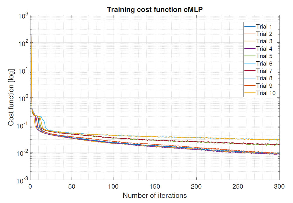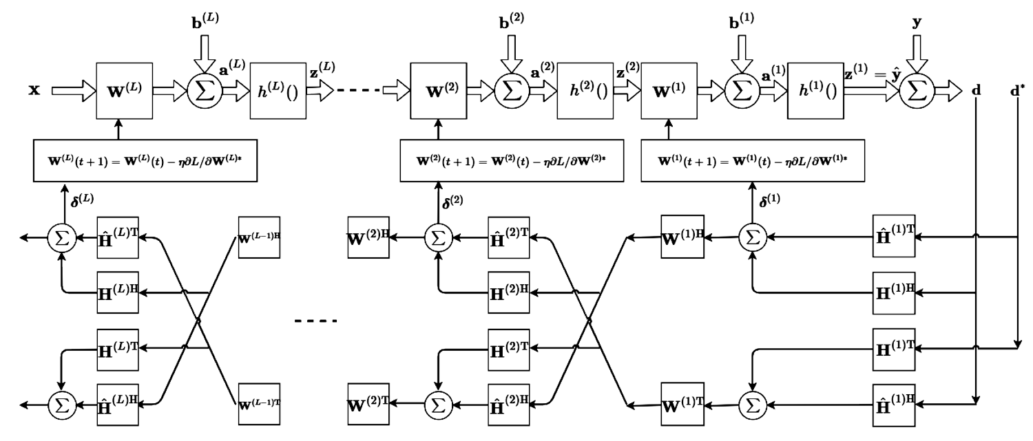 A A A Volume : 44 Part : 3 Proceedings of the Institute of Acoustics Analysis of complex-valued neural networks for audio source localisation Vlad S. Paul, Institute of Sound and Vibration Research, University of Southampton, UK Philip A. Nelson, Institute of Sound and Vibration Research, University of Southampton, UK 1 INTRODUCTION Machine learning has become increasingly popular in the audio signal processing field, with comprehensive surveys1–3 showing the rapid increase in applications and network performance. Some of the most popular applications are speech analysis and synthesis, audio source separation and detection and audio source localisation and tracking. The latter has been the subject of increasing interest due to the development of challenges such as Detection and Classification of Acoustic Scenes and Events (DCASE) and Learning 3D Audio Sources (L3DAS), which provide large datasets for participants to train various neural network architectures for solving the tasks. The fast progress of machine learning techniques in the audio source localization field was enhanced by some earlier papers that showed the improvement of localization accuracy when using neural networks compared to previous well-established signal processing techniques such as beamforming, MUSIC or ESPRIT. Some of the papers worth mentioning here are4–6. If one considers the use of machine learning for sound source localisation applications only, the survey by Grumiaux et al.1 shows the considerable amount of work that has been undertaken in recent years and interestingly, all papers mentioned there but one, use real-valued neural networks (RVNNs), where all parameters are real. The paper by Tsuzuki et al.7 used a complex-valued neural network (CVNN) to localize sound sources and showed that the localization accuracy is improved compared to the performance of RVNNs for their particular application case. Generally it can be observed that the most popular network architectures are the RVNNs. Some of the possible reasons for this could be the fact that CVNNs contain only complex-valued inputs, training parameters and outputs and therefore any operation with complex data require more computational complexity. In addition to this, the design of fully-complex activation functions can become difficult due to Liouville’s theorem8, which states that a complex-valued function cannot be bounded and fully differentiable at the same time, unless it is a constant. Following this, complex-valued activation functions can be divided into fully-differentiable, differentiable around certain points only, or not differentiable at all9. Despite certain difficulties when designing the CVNNs, recent studies showed the benefits of CVNNs especially in the signal processing field (MRI, speech enhancement and image editing). The survey by Lee et al.10 shows the increase in popularity of CVNNs over RVNNs in some cases, especially when the relation between phase and magnitude (or real and imaginary parts) is of maximum importance. RVNNs usually use the real and imaginary parts of an input as separate components, which leads to a doubling of learnable parameters, while CVNNs can work directly with the complex-valued data. Another important advantage of the CVNNs during training has been discussed11, where the author suggests that due to the phase rotation and the magnitude attenuation that is possible due to the complex-valued operations, the degree of freedom in the neural network is reduced, which can lead to a better generalization. Based on the observation that the use of CVNNs is currently increasing in the signal processing field, but only little research has been yet undertaken on audio source localisation using complex-valued data, this paper attempts to compare the performance of CVNNs compared to RVNNs for different localization tasks. A particular focus is on the influence of the choice of the input features on localisation performance. 2 THE COMPLEX MULTILAYER PERCEPTRON This section will present the analytical extensions of the real multilayer perceptron (MLP) to its complex version using the complex-valued data as a one dimensional input. The derivation is based on the rules of the Wirtinger calculus12 and the computation of gradients is derived to give a final form that can be easily implemented for a complex MLP with any number of hidden layers. Since most of the theory has been presented previously by Paul and Nelson13, only the important parts will be discussed here. 2.1 Forward and Backward Propagation in the Complex MLP The architecture of a multilayer perceptron (MLP) with one hidden layer is shown in Figure 1. Figure 1: MLP model with one hidden layer The forward propagation of such an MLP network can be written in matrix form as: where the weights of the network are denoted as W(2), W(1), the biases as b(2), b(1) and a(2), z(2) denote respectively the inputs and outputs of the hidden layer. Similarly, a(1) is the input into the hidden layer and z(1) = is the output of the network. All variables are defined in the complex domain. The loss function can be defined as the sum of squared errors given by where is the difference between the network output and the desired output, where k is the k-th component of vector d and the superscript H denotes the Hermitian transpose. Using an approach similar to that used for the MLP with real variables14, in order to derive the backpropagation for the complex MLP, the gradients of the real loss function L with respect to the complex weights are evaluated. 2.1.1 Complex Backpropagation for an MLP with any number of Hidden Layers The detailed derivation of the complex gradients with respect to the weight matrices W(1), W(2) has been presented in Paul and Nelson13 and will not be repeated here. Using the chain rule approach, a general expression for the complex backpropagation of an MLP with any number of hidden layers is given by where w(l) is a vector containing all values in W(